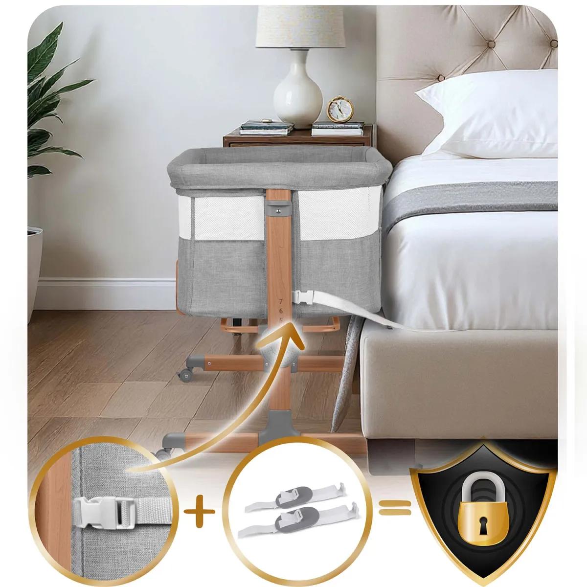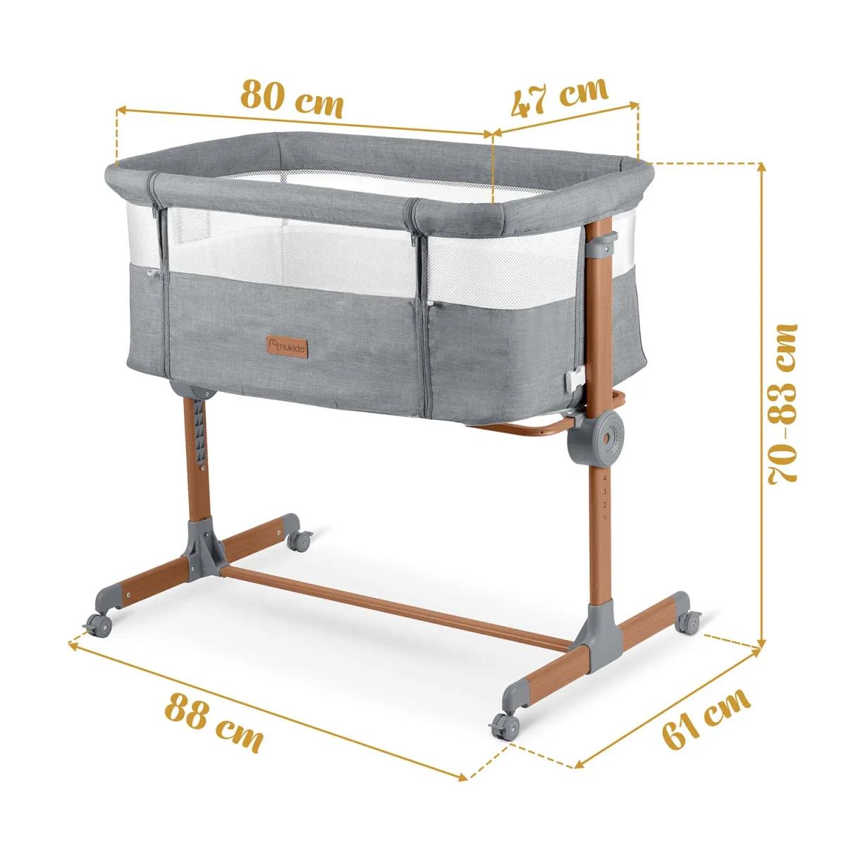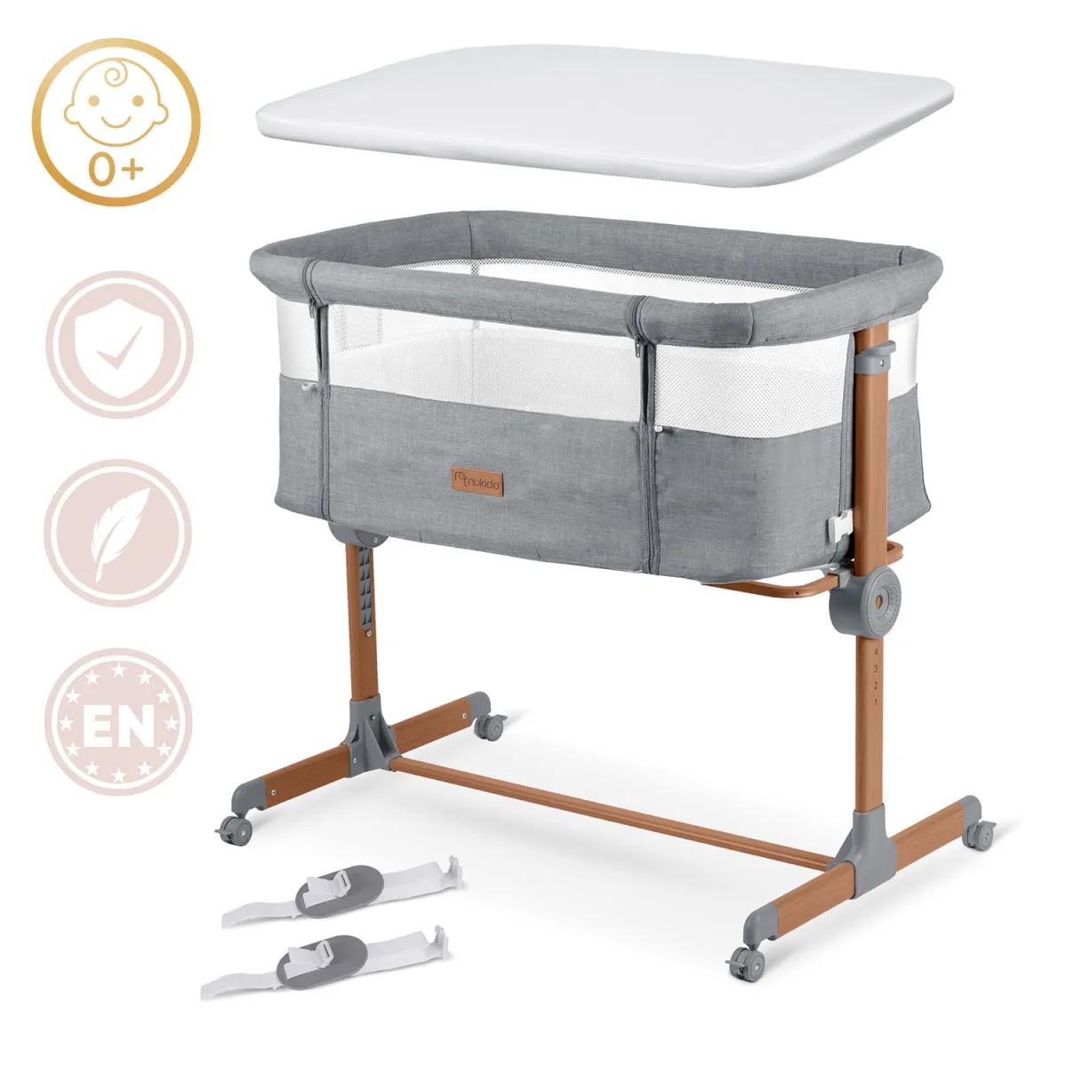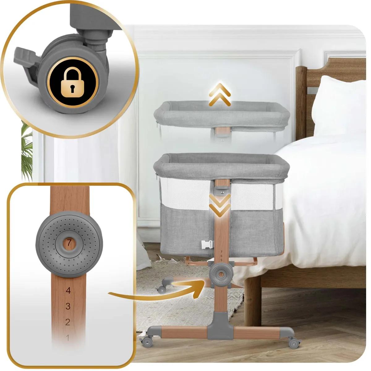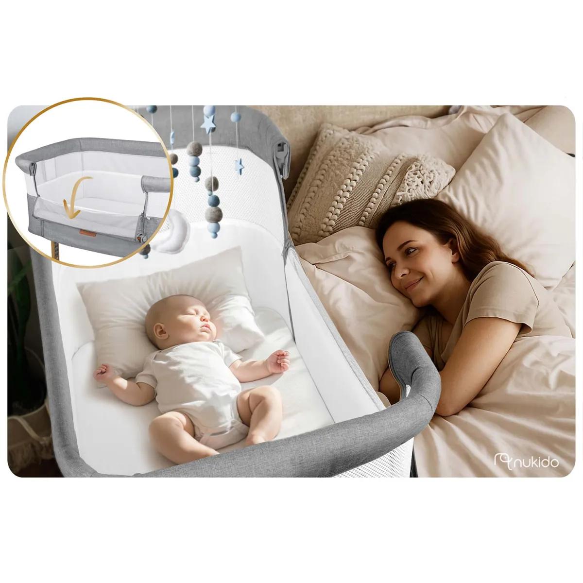 Dětská cestovní postýlka NK-243, skládací, světle šedá | Nukido s výsuvnou přístavnou částí nabízí praktické řešení pro rodiče i miminka na cestách. Vyrobili ji tak, aby byla lehká a skládací, což usnadňuje manipulaci a přenášení při cestách. Výšku lze nastavit v 7 krocích, nezávisle z každé strany, což pomáhá přizpůsobit postýlku výšce vaší matrace.
