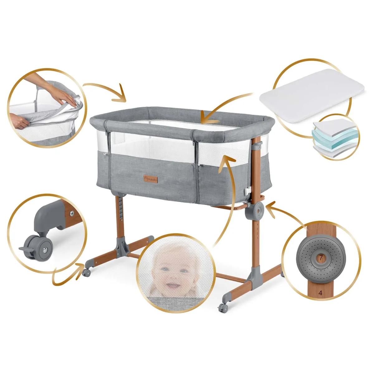 Stabilní konstrukce zajišťuje bezpečnost, zatímco 4 kolečka s brzdou umožňují přesouvání bez námahy. Boční přístup je odnímatelný a uzamykatelný, aby dítě nemohlo samo vyjít, a potahy i látkové části jsou odnímatelné a pratelné, což usnadňuje údržbu. Součástí balení je i matrace s odnímatelným potahem, která zajišťuje pohodlí pro děťátko.