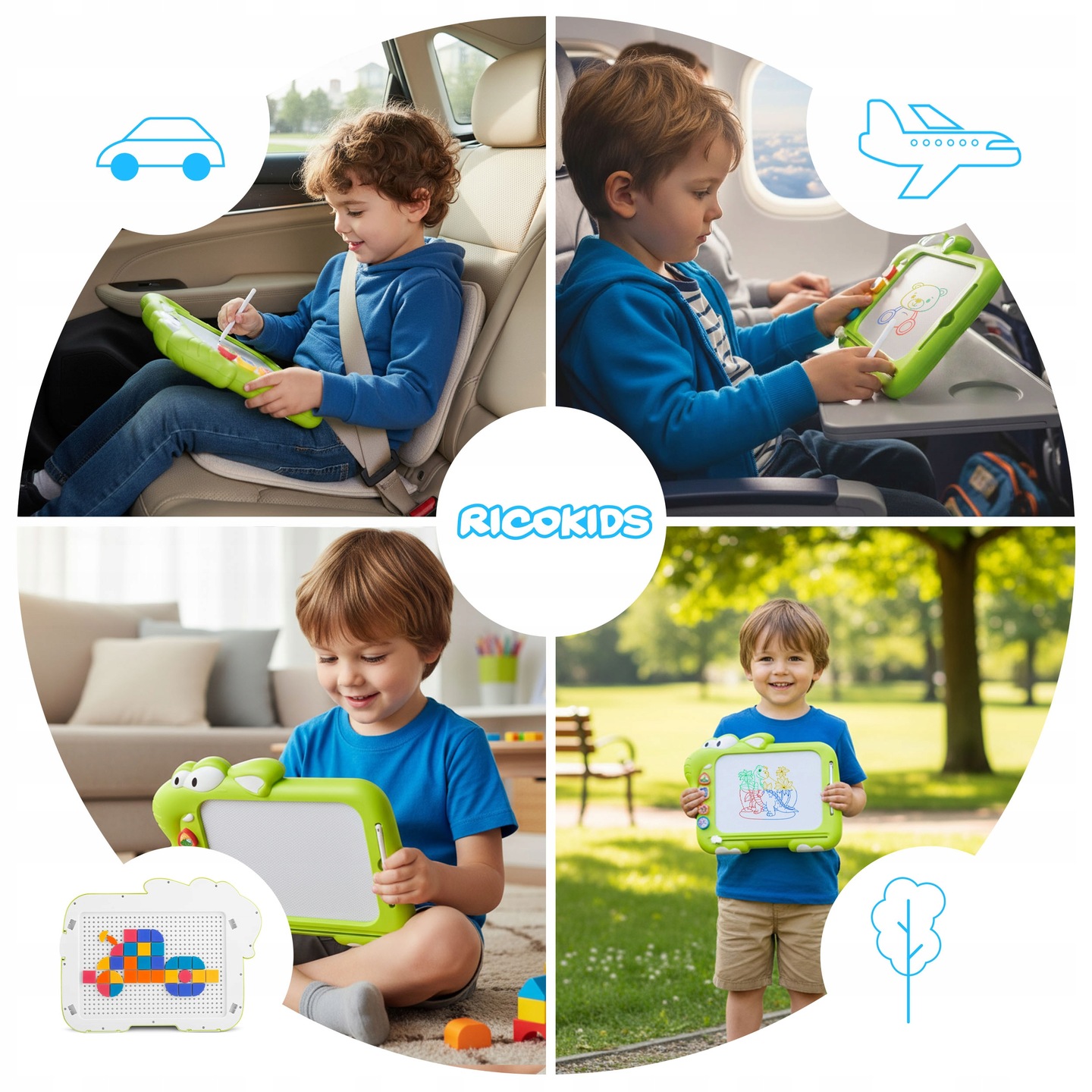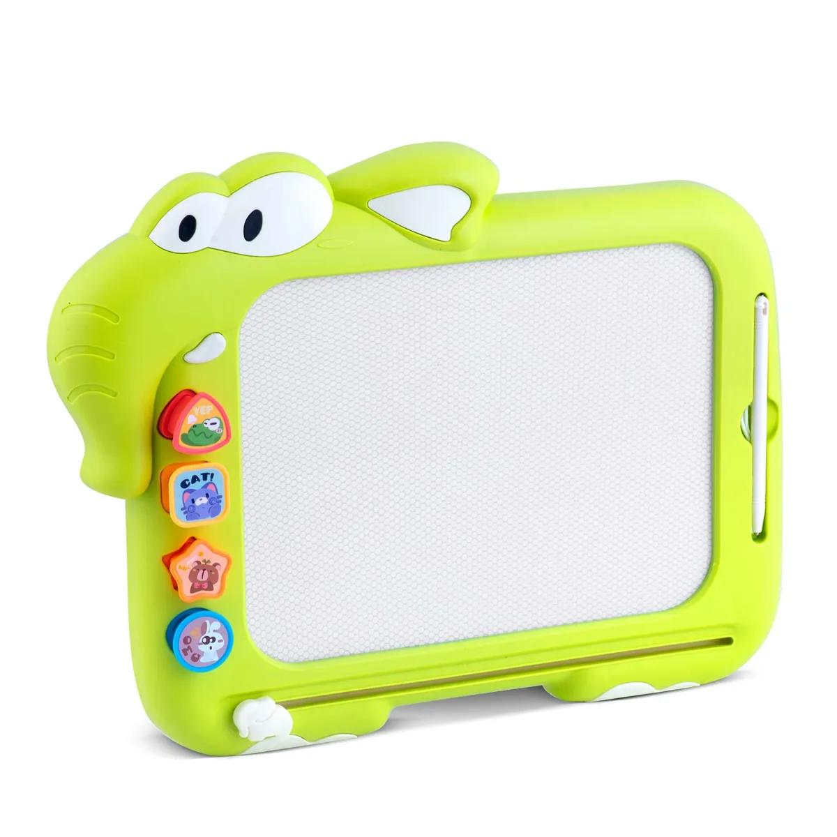 Dětská magnetická tabule na kreslení RK-823, zelená | Ricokids nabízí dětem kreativní hru spojenou s prostorem, kde mohou skládat také tvary tangramu. Je to univerzální kreativní hračka pro děti, která spojuje funkce magnetického znikopisu a tangramové skládačky. Umožňuje kreslení pomocí pera a magnetických razítek, přičemž obrázek lze jedním pohybem jednoduše „vymazat“.