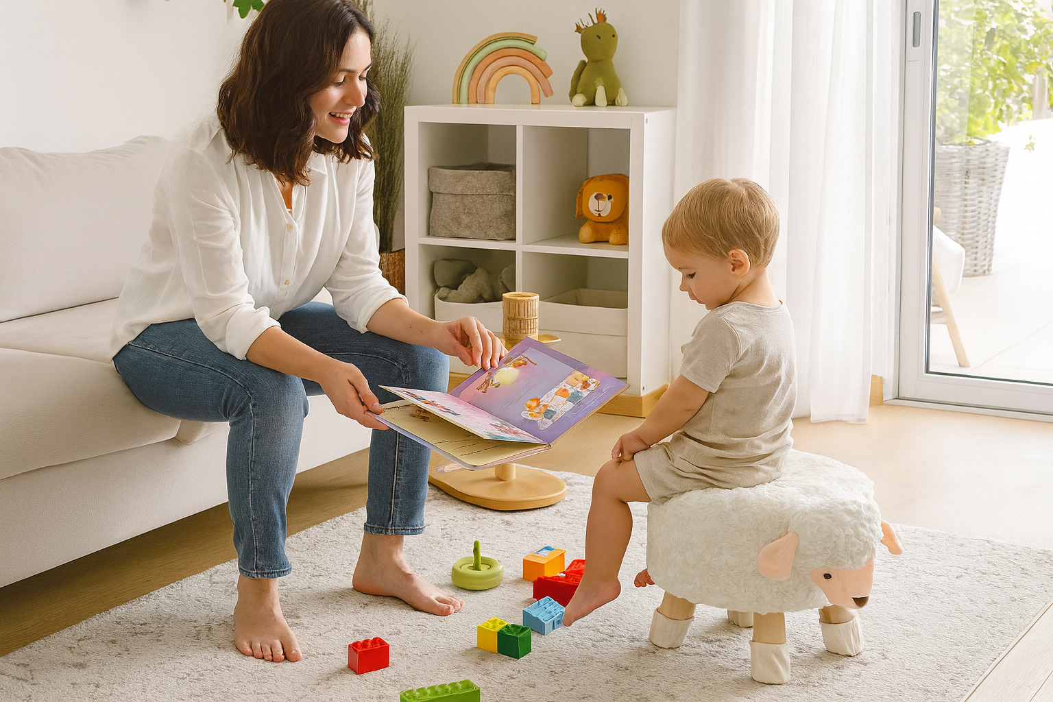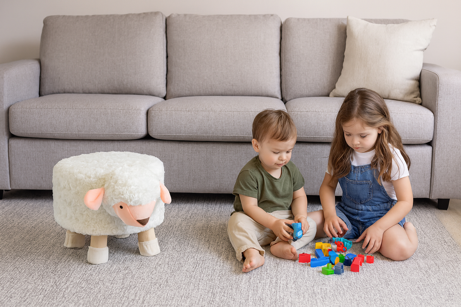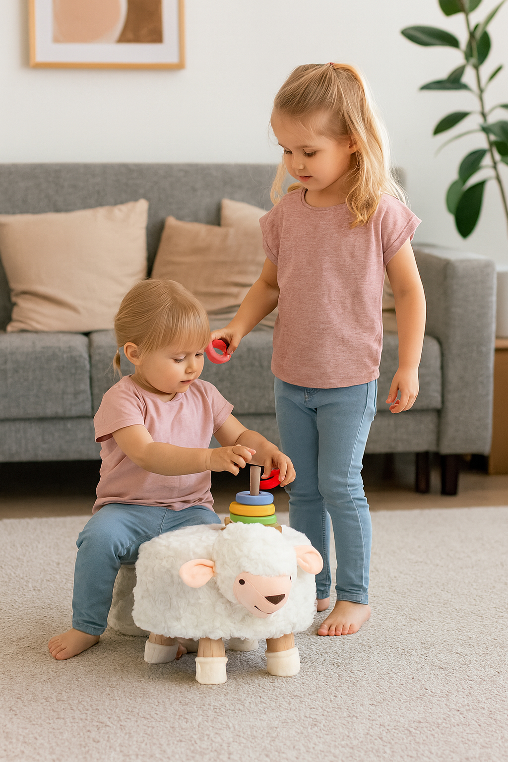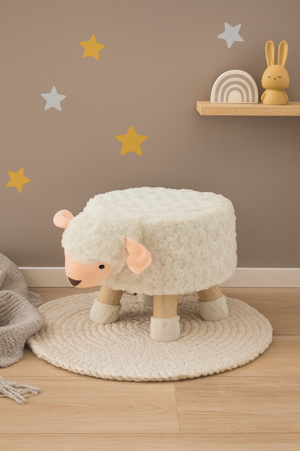 Dětská taburetka, 28x25cm | ovečka je originální doplněk, který nabízí praktické místo k sezení či odpočinku, ideální do dětského pokoje. Taburetka je vyrobena z měkkých materiálů, které umožňují pohodlné sezení, a vnitřní výplň poskytuje stabilní oporu. Díky kompaktním rozměrům se pohodlně vejde i do menších prostor, ale zároveň dodá místnosti hravý a originální nádech. Design inspirovaný žirafou osloví děti i dospělé.