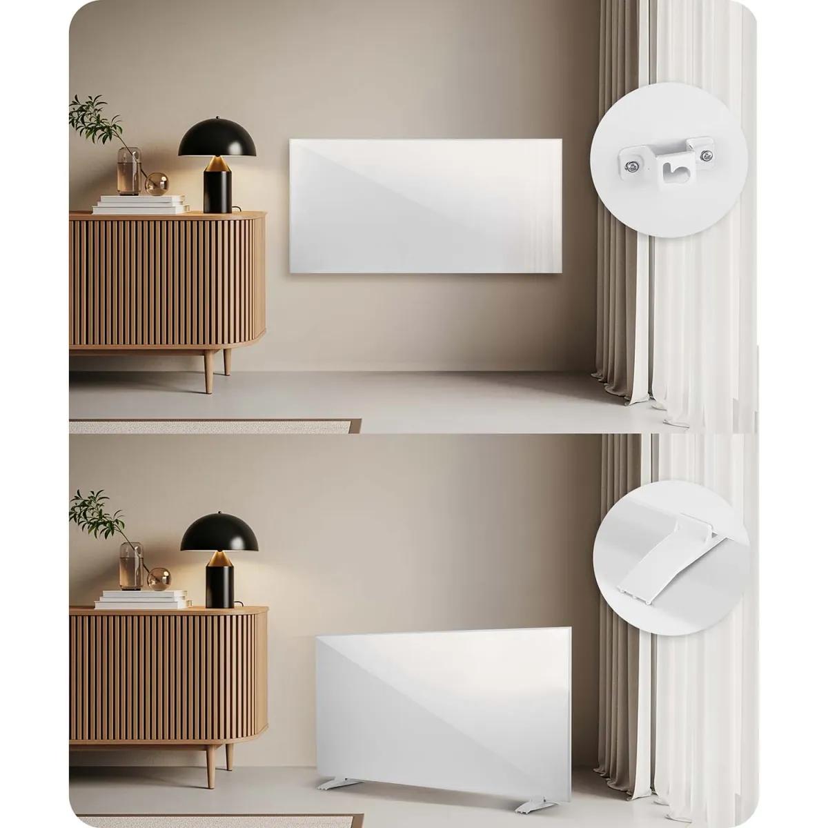 Je koncipován jako 3v1 – lze namontovat na stěnu, na strop nebo postavit samostatně pomocí přiložených nohou, čímž se přizpůsobí různým typům interiérů. Materiálové vrstvy zahrnují PET, PP, aluminium a ocel. Panel má krytí IPX4, což zaručuje odolnost vůči vodě – vhodné i pro místnosti s vyšší vlhkostí (např. koupelny), samozřejmě při dodržení bezpečnostních předpisů. Délka napájecího kabelu je 1,5m.