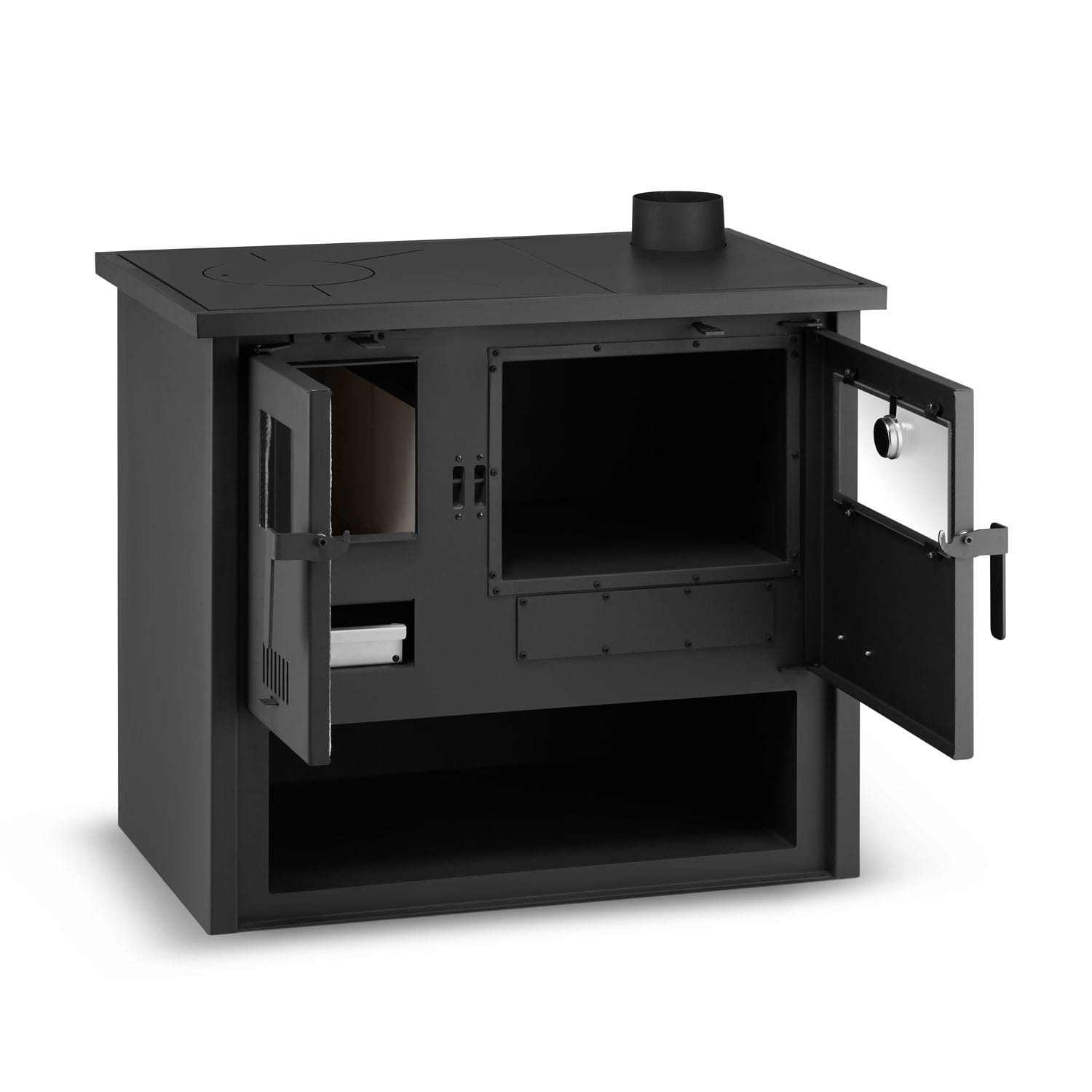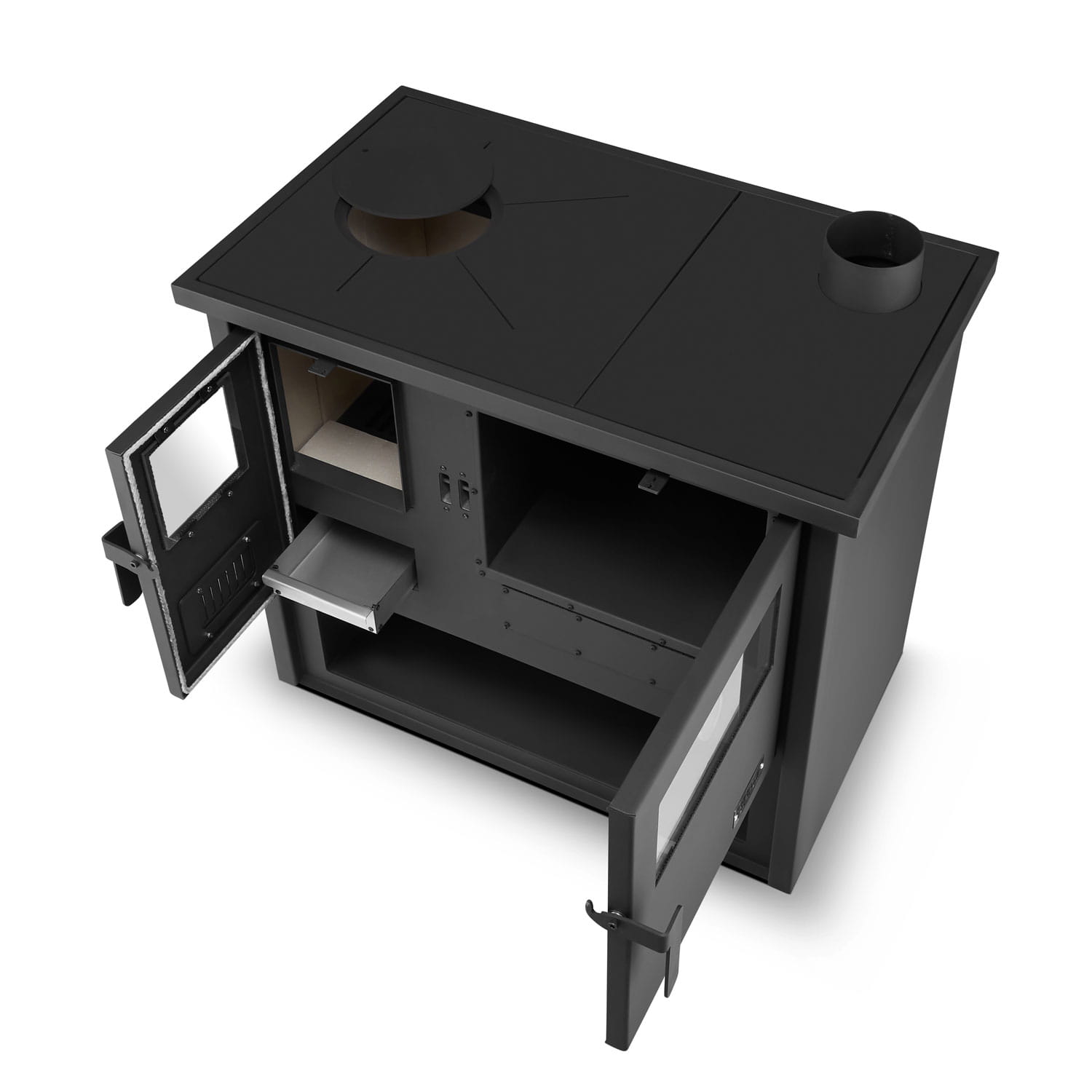 Kamna mají rozměry 860 x 535 x 810 mm, což z nich činí ideální volbu pro kuchyně s omezeným prostorem. Navzdory svým malým rozměrům nabízejí vše, co potřebujete pro pohodlné vaření a vytápění. Topný výkon 9–11 kW umožňuje účinně zvýšit teplotu ve středně velké místnosti a prostorná spalovací komora (235 x 400 x 330 mm) umožňuje delší hoření bez nutnosti častého doplňování dřeva.
