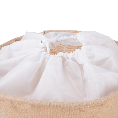 Koš na hračky, 35L, béžový | Kruzzel vám poslouží jako praktický košík pro ukládání dětských hraček či jiných drobností v domácnosti. Je vyroben z odolných materiálů s vodotěsnou vnitřní vrstvou, která chrání obsah před vlhkostí. Košík je uzavíratelný pomocí šňůrky, takže vložené věci nevysypete, a během nevyužívání jej jednoduše sundáte.