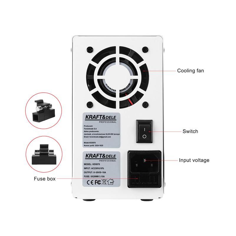 Laboratorní napájecí zdroj | KD5870 je moderní, nastavitelný laboratorní napájecí zdroj určený pro přesné servisní, dílenské a laboratorní práce. Zařízení nabízí široký rozsah napětí a výstupního proudu, jakož i vysokou přesnost a stabilitu provozu. Tento produkt je vynikající volbou pro elektronické inženýry, hobbyisty a specialisty, kteří potřebují stabilní a bezpečný zdroj napájení s vysokou přesností.