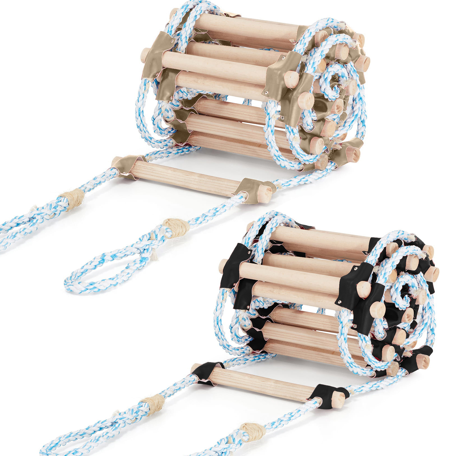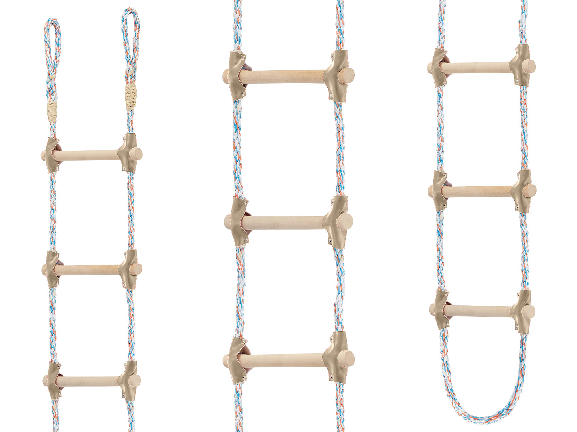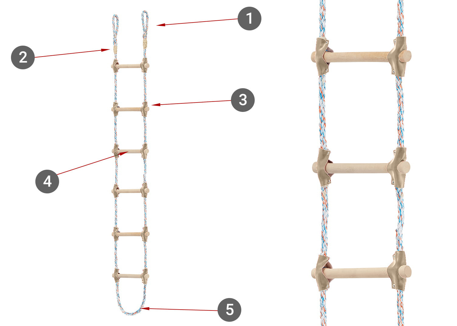 - Speciální výztuhy z jutového lana – upevnění jsou dodatečně zajištěna chrániči z jutového lana, které zajišťují hlavní lana žebříku v délce přibližně 10 cm.