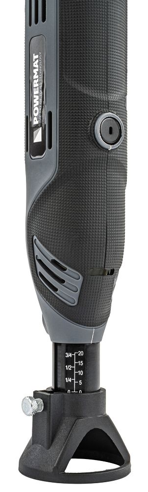 Lehké plastové pouzdro se pohodlně drží a poskytuje pohodlí i při delším používání. Vodicí lišta s nastavitelnou hloubkou umožňuje kontrolu procesu obrábění a usnadňuje práci na rovných površích. Balení obsahuje ohebnou hřídel, která umožňuje přesnou práci na těžko dostupných místech.