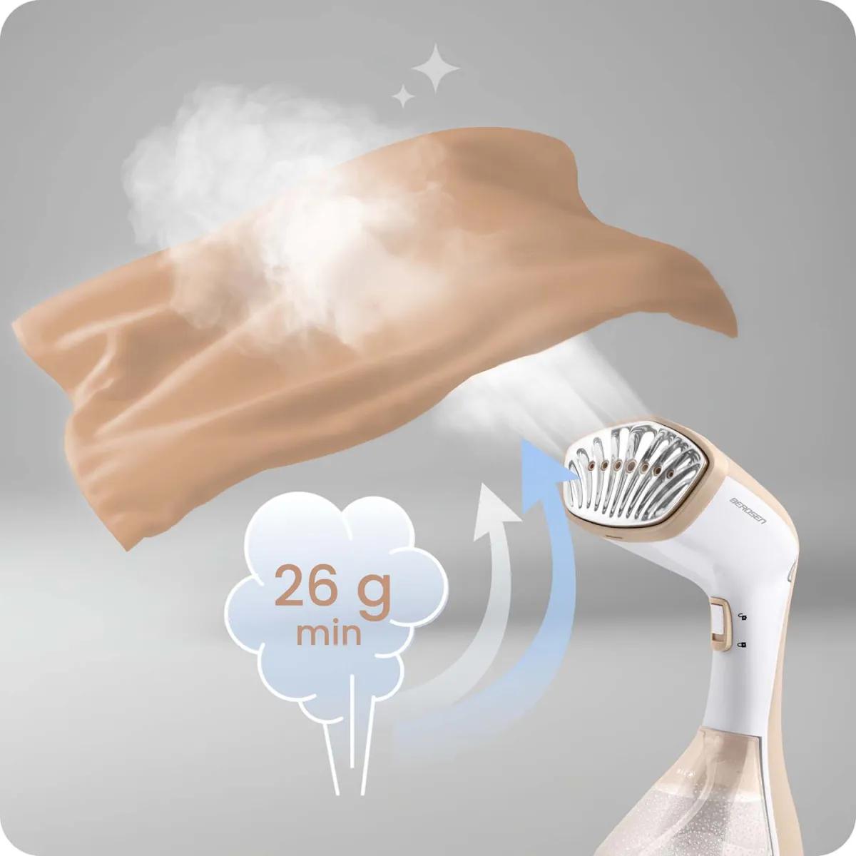Napařovač prádla BD-311, 1600W, bílý | Berdsen je praktické zařízení pro rychlé osvěžení a vyhlazení oblečení bez potřeby žehlicího prkna. Napařovač je navržen pro rychlé a pohodlné vyhlazení oděvů a osvěžení textilií. Disponuje výstupem páry přibližně 26 g/min, což umožňuje efektivní odstranění jemných i středních záhybů.