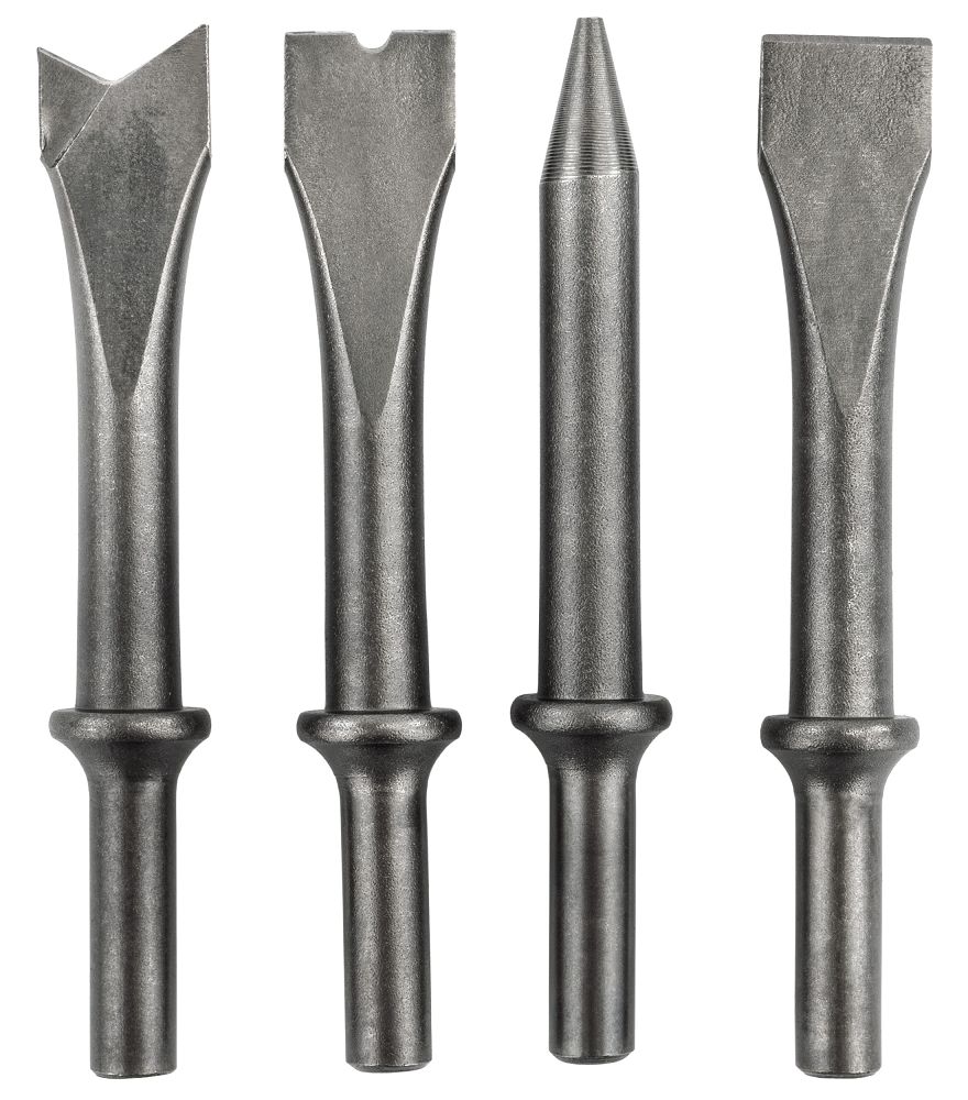 Kladivo je plně kompatibilní s pneumatickými dlátami se standardní stopkou 10 mm. Umožňuje použití s širokou škálou vyměnitelných nástrojů, jako jsou plochá, bodová a drážkovací dláta, které jsou dostupné na trhu. Avšak již tato sada obsahuje čtyři profesionální pneumatická dláta z tvrzené oceli, uzpůsobená na stopku 10 mm. Každé z nich plní jinou funkci, čímž zajišťuje univerzálnost při práci v dílně a při renovačních pracích.