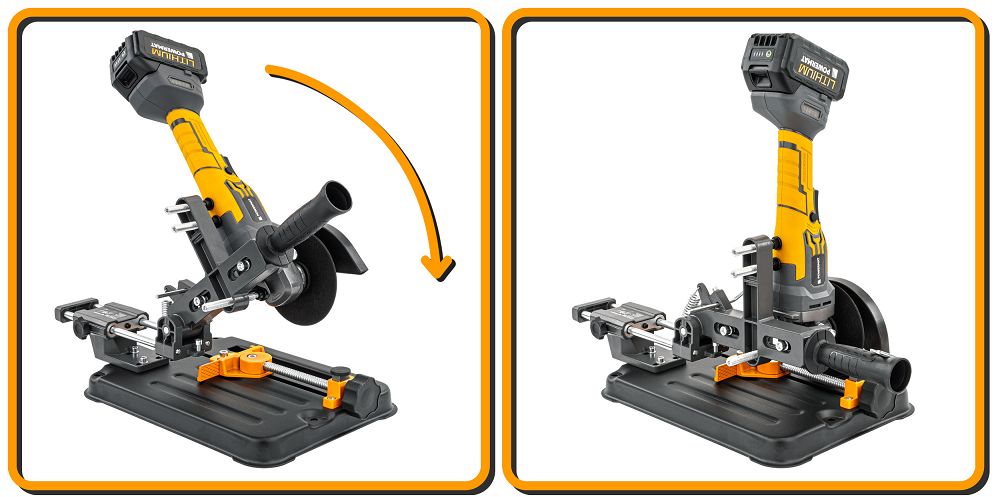 Stojan pro úhlovou brusku, 125 mm | PM-SDSP-330T je stabilní a robustní příslušenství, které zajišťuje bezpečné uchycení nástroje a přesné horizontální broušení. Zařízení je kompatibilní s úhlovými bruskami vybavenými kotouči o maximálním průměru 125 mm. To umožňuje efektivní a rychlé řezání různých materiálů při zachování vysoké přesnosti.