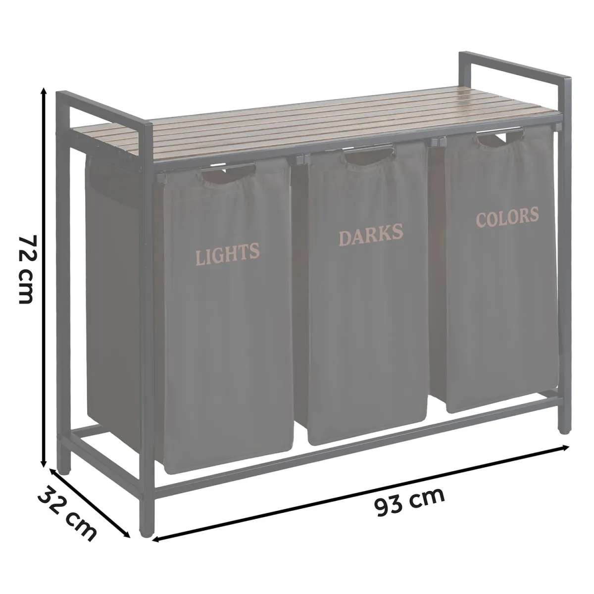 Tříkomorový prádelní koš s rámem, 120L, černý | Massido