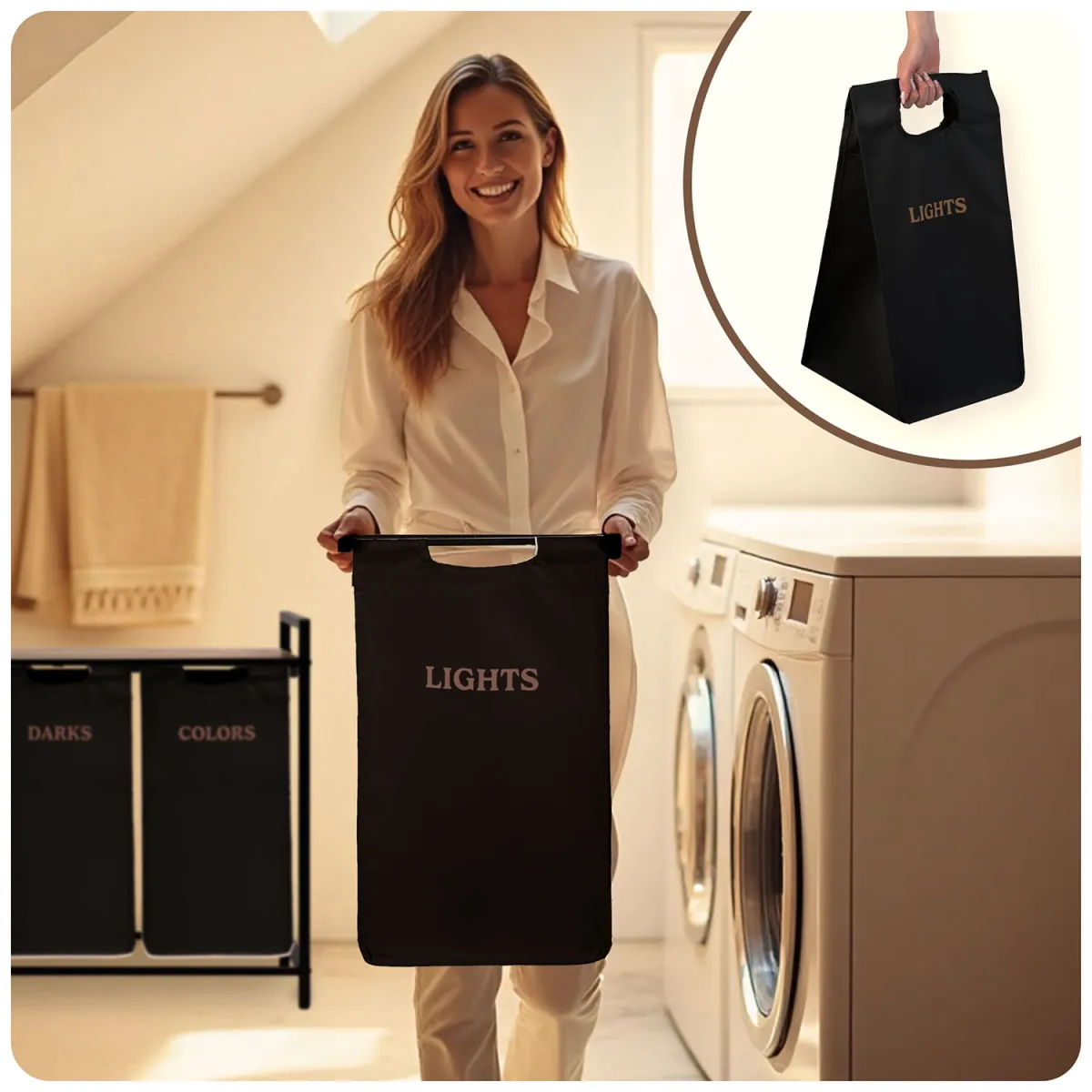 Díky tomuto systému šetříš čas při praní a udržuješ pořádek bez námahy. Moderní a minimalistický design s dřevěnými a černými prvky zapadne do většiny interiérů – od koupelny po prádelnu. Textilní vak je odnímatelný, snadno se udržuje a v případě potřeby jej můžeš jednoduše vyjmout a přenést k pračce. Stabilní kovová konstrukce zajišťuje, že koš neztratí tvar ani při plném zatížení.