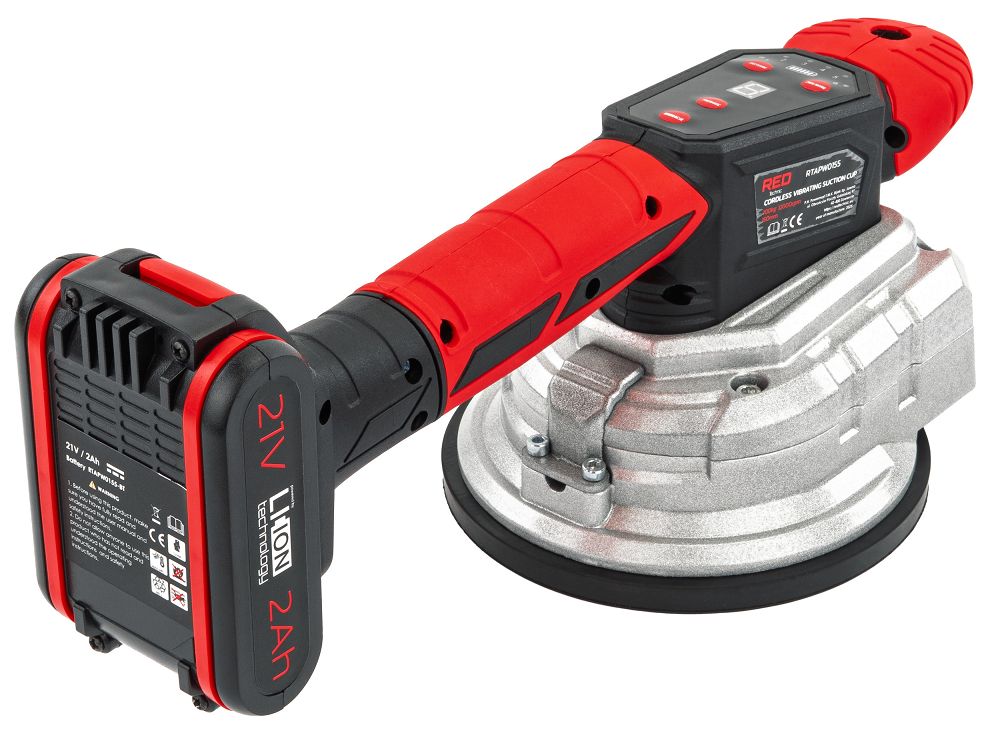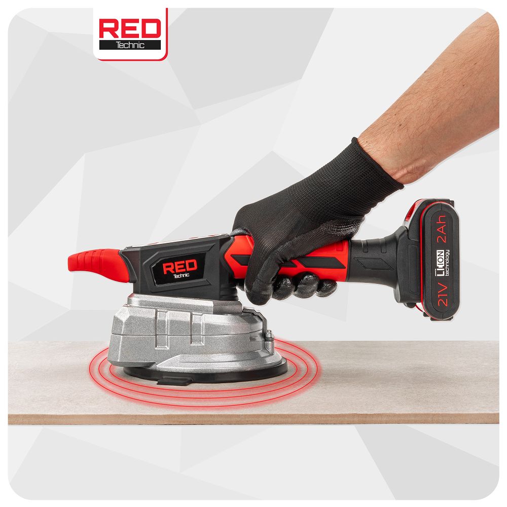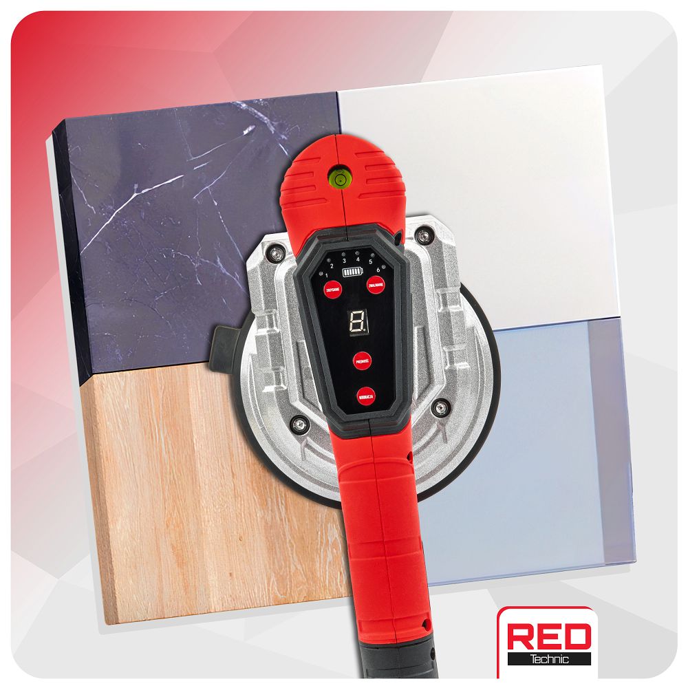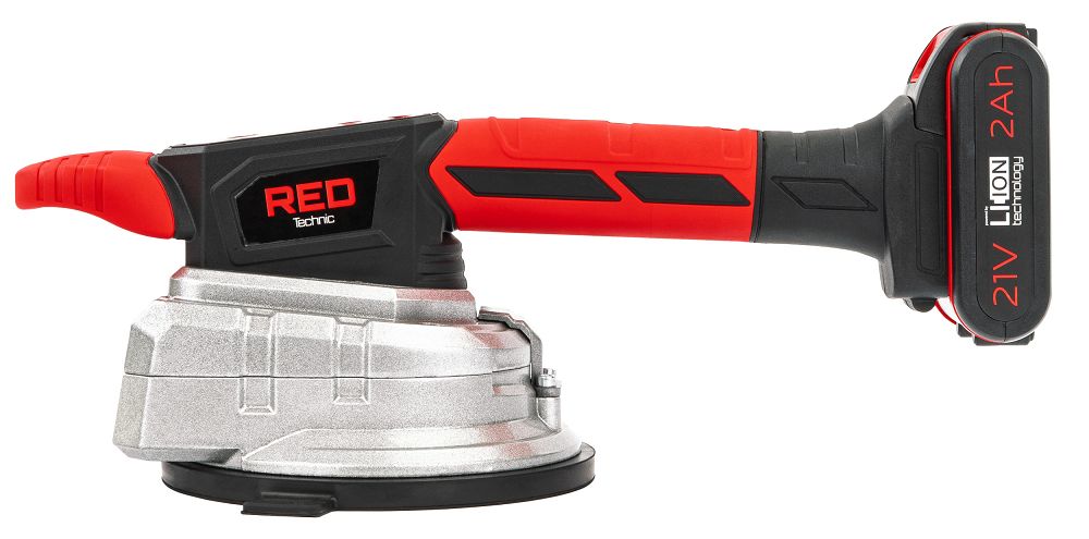 Vibrační přísavka na obklady RTAPW0155, 21V | RED TECHNIC nabízí sílu sání až do 100 kg s regulovatelnými vibracemi pro přesné polohování dlaždic. Přísavka je ideální pro obkládání, sklářský průmysl, stavebnictví a truhlářství. Je navržena pro přesouvání a instalaci hladkých povrchů – od dlaždic a skla po laminátové desky – je nepostradatelným pomocníkem i pro profesionály.