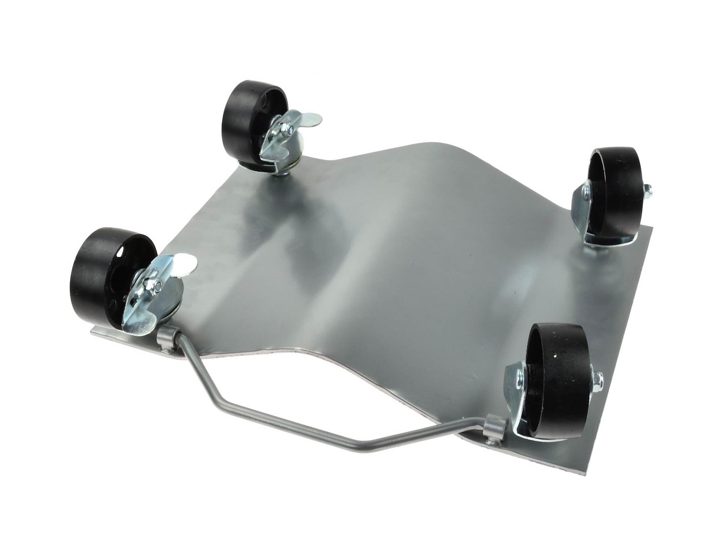 Vozík pod kolo auta, 680kg, 2ks | GEKO se hodí do každého autoservisu, je vhodný pro přemisťování vozidel v dílně nebo garáži. Každý vozík má ocelové tělo, platformu s protiskluzovou úpravou a čtyři otočná kolečka o průměru 76 mm, z čehož dvě jsou vybavena parkovacím brzdovým mechanismem, což zajišťuje stabilitu při stání.